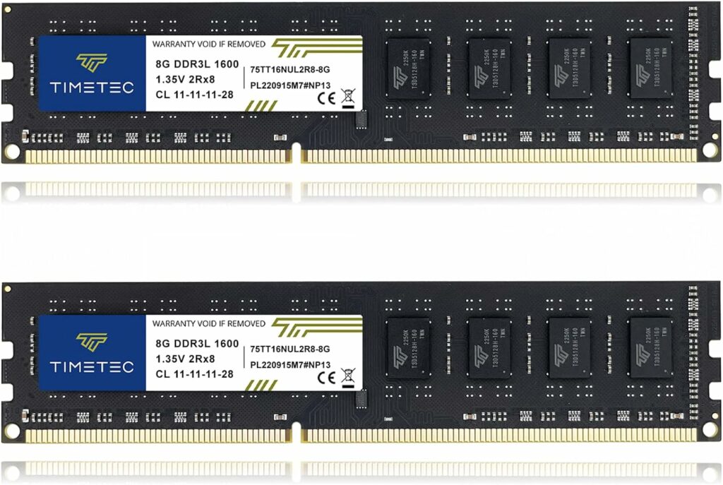 Discover more about the Timetec 16GB KIT(2x8GB) DDR3L / DDR3 1600MHz (DDR3L-1600) PC3L-12800 / PC3-12800 Non-ECC Unbuffered 1.35V/1.5V CL11 2Rx8 Dual Rank 240 Pin UDIMM Desktop PC Computer Memory RAM(SDRAM) Module Upgrade.